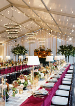 Victoria and Aquiles' wedding at Dover Hall was a blend of classic style and personal heritage. Drawing inspiration from 1990s Ralph Lauren fashion and British hunting club aesthetics, they created a bold, autumnal atmosphere with a rich color palette and sophisticated textures.